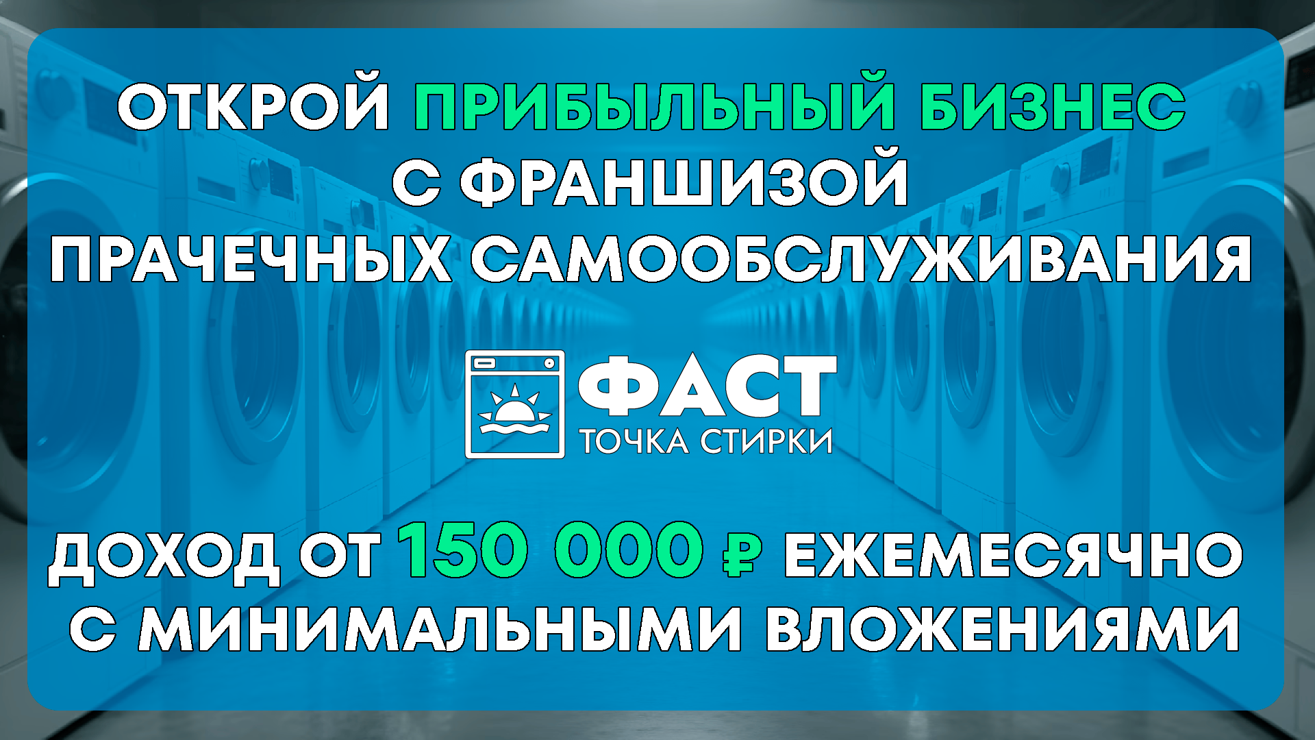 ФастСтоимость199 000 ₽Инвестиции1 175 799 ₽Окупаемость9 мес.Доход150 000 ₽Откройте прибыльный бизнес с франшизой прачечных самообслуживания "Фаст" — доход от 150 000 рублей ежемесячно с минимальными вложениями! Мы предлагаем вам уникальную возможность начать собственное дело с небольшими вложениями, но с гарантированной отдачей и простотой ведения. Автоматизированная прачечная, которая работает круглосуточно, не требует штатных сотрудников и приносит стабильный доход уже с 1-го месяца. Оставьте заявку, чтобы получить подробные материалы по франшизе!