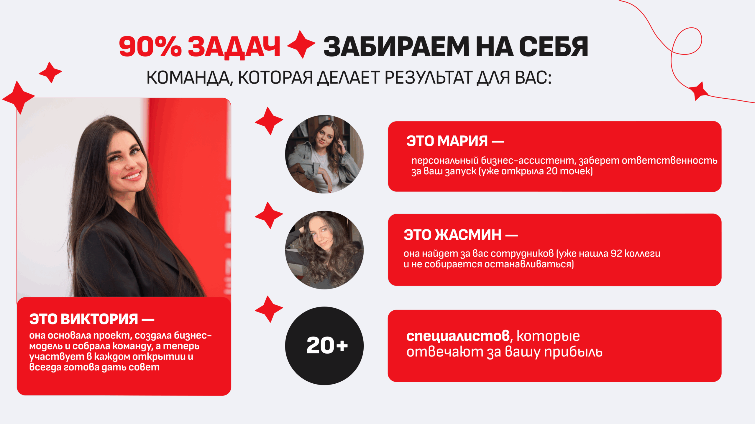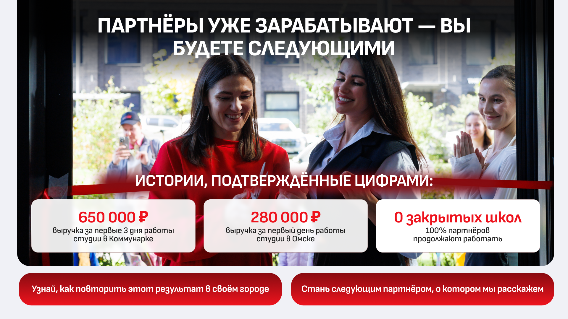 Я — мама троих детей и бывший учитель. Открыла Академию хореографии «Синергия», за полгода вышла на выручку 760 000 ₽ у уже окупилась. В первый месяц продала десятки годовых абонементов, сейчас у нас 100+ учеников и 14 групп. Маркетинг и подбор педагогов организовала лично собственница бренда Виктория Харитонова. Менеджеры помогали открывать точку “как свою”. Теперь хочется все время находиться в академии и помогать детям