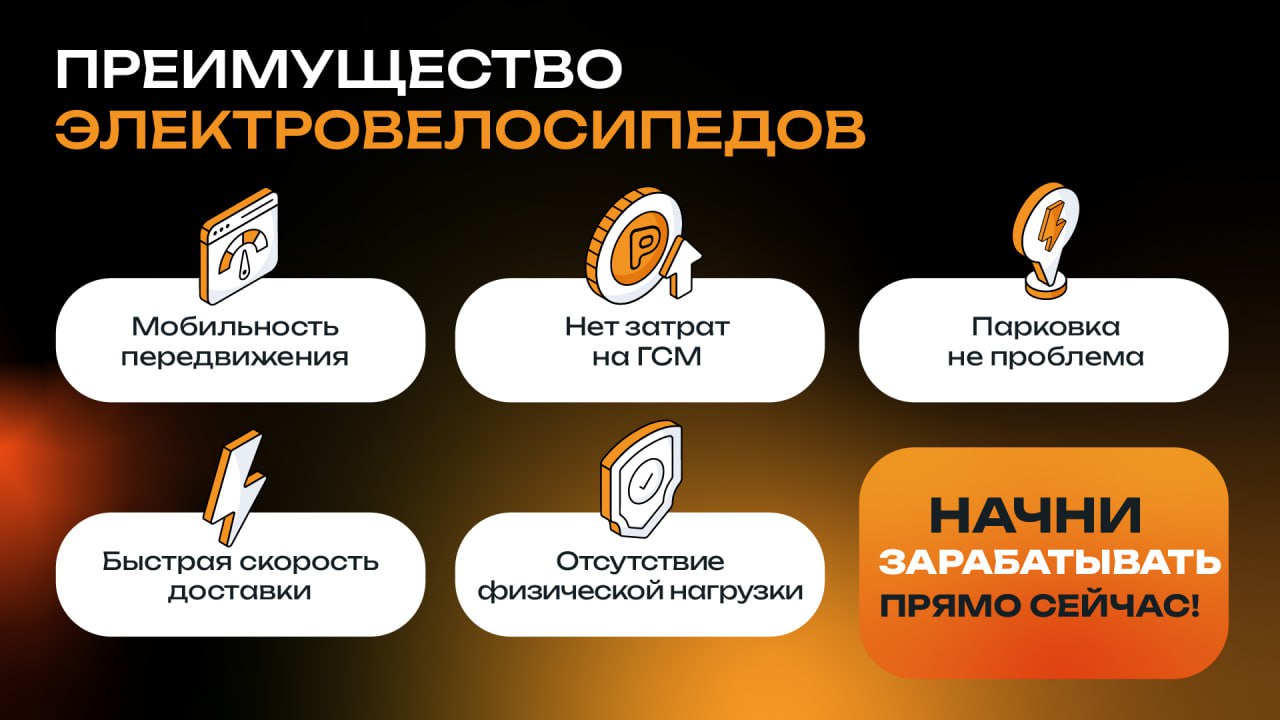 Я Алик, владелец проката электровелосипедов «Велочка». У нас 100 электровелосипедов и сервис по ремонту. Ранее я продавал обычные велосипеды, но заметил рост интереса к электровелосипедам, особенно у курьеров. Мы предоставляем аренду электровелосипедов и аксессуаров, а также услуги по ремонту и обслуживанию. Скоро открою второй филиал. В современном мире все хотят быструю доставку, и мы готовы это предоставить!