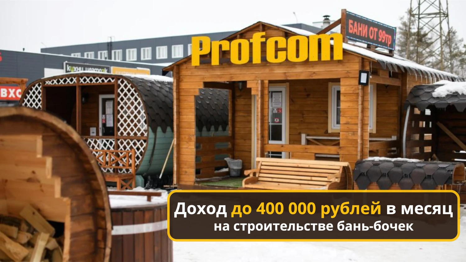 ProfcomСтоимость490 000 ₽Инвестиции700 000 ₽Окупаемость5 мес.Доход400 000 ₽Франшиза Profcom — готовый бизнес по строительству бань‑бочек с доходом до 400 000 рублей в месяц. В пакет входят: бренд, уникальные технологии, рекомендации по продажам, управленческому учету, маркетингу и стимулированию рынка, доступ к CRM‑системе. Продукция отличается высоким качеством сырья и квалификацией сотрудников, а ценовая политика чуть ниже рынка позволяет удерживать продажи и рентабельность. Постоянный спрос круглый год — для личного использования, аренды или баз отдыха.