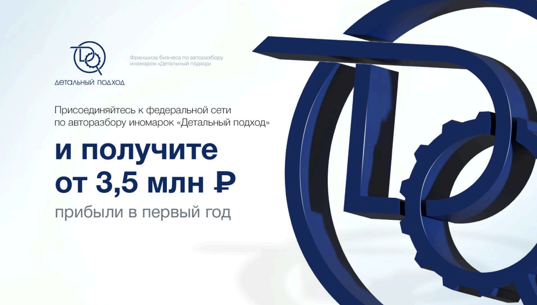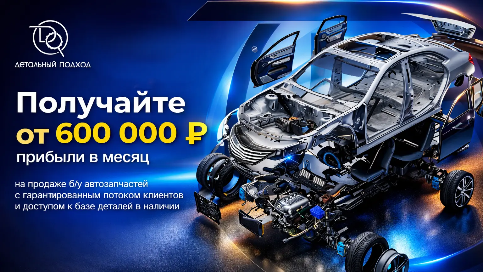 Детальный подходСтоимость490 000 ₽Инвестиции800 000 ₽Окупаемость5 мес.Доход600 000 ₽Проверенная бизнес-модель в нише продажи б/у автозапчастей. Маржинальность до 1000% с чистой прибылью от 200 000 руб. в месяц с одного машино-комплекта. Партнёрам доступны: надёжные поставщики, автоматизированная бизнес-модель, поставка комплектов из Англии, ОАЭ, США и СНГ, готовый интернет-магазин и полная поддержка на всех этапах запуска и ведения бизнеса. Это возможность войти в высокодоходную и стабильную нишу с минимальными рисками.