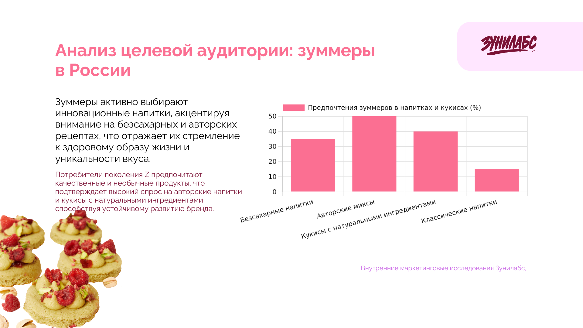 ЗунилабсСтоимость790 000 ₽Инвестиции350 000 ₽Окупаемость3 мес.Доход630 000 ₽Кофейня ЗУНИЛАБС — уютное место, которое привлекает гостей, особенно зумеров, своими фирменными двойными напитками — дабблами, знакомыми всему городу, и необычными печеньями — кукисами. Формат выстроен так, чтобы партнёр с первого дня видел, как растёт его прибыль. Доход — от 630 000 руб. в месяц. Бренд, стандарты, рецептуры и поддержка уже готовы. Вам остаётся открыть двери и встретить гостей!