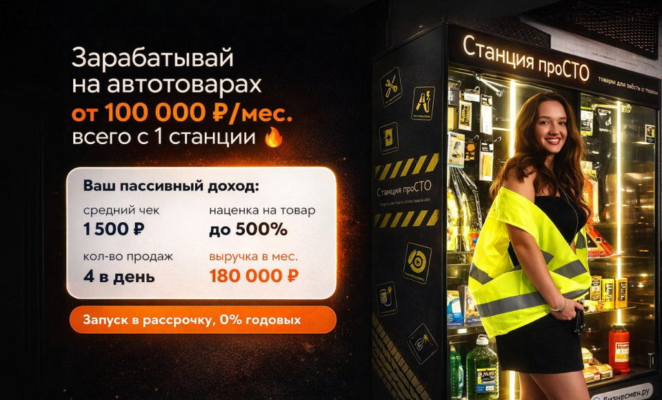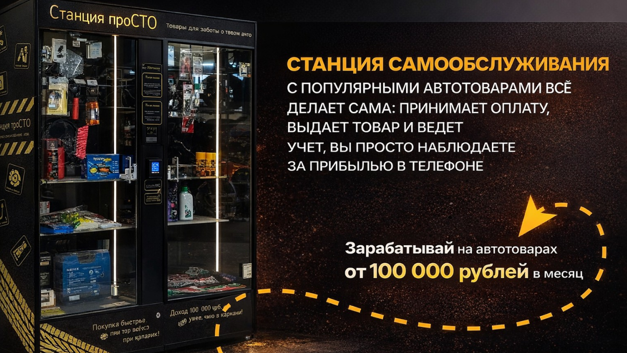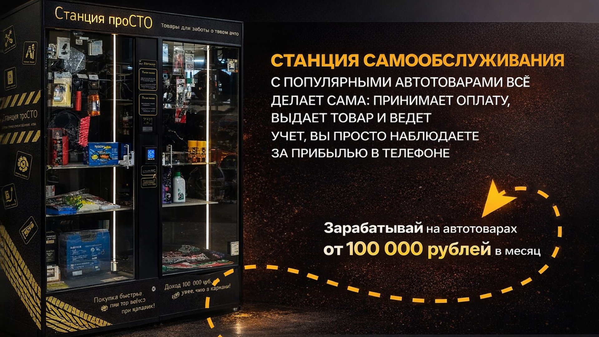 Станция ПРОСТОСтоимость240 000 ₽Инвестиции90 000 ₽Окупаемость3 мес.Доход100 000 ₽Станция проСТО — бизнес на автотоварах без персонала. Доход с первых месяцев! Готовый каталог из 100+ ходовых автотоваров, автоматические продажи 24/7 с контролем в телефоне. Мы запускаем под ключ: локация, юр. оформление, закупки, обучение и сопровождение. Без роялти. Гарантия продаж и окупаемости — по договору. Занятость — до 3 часов в неделю.